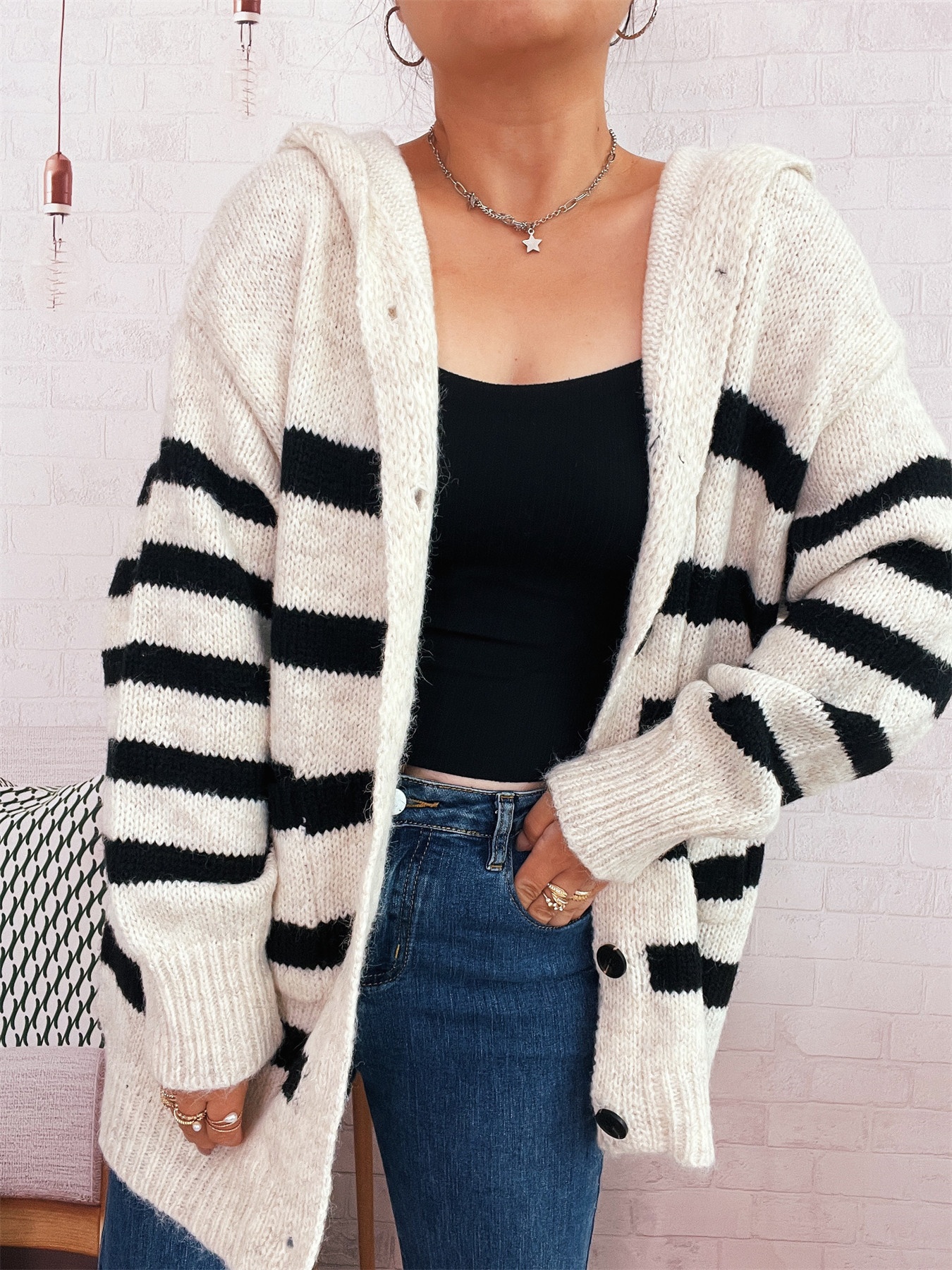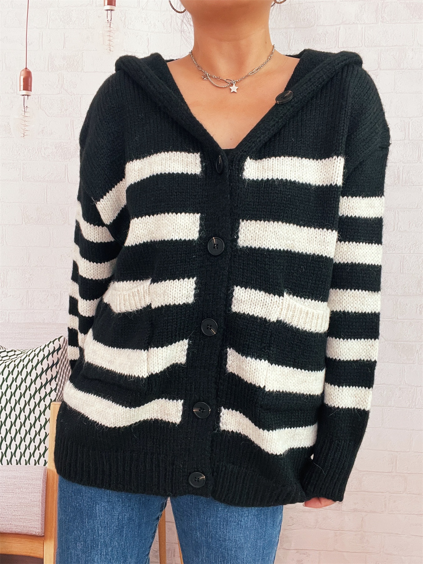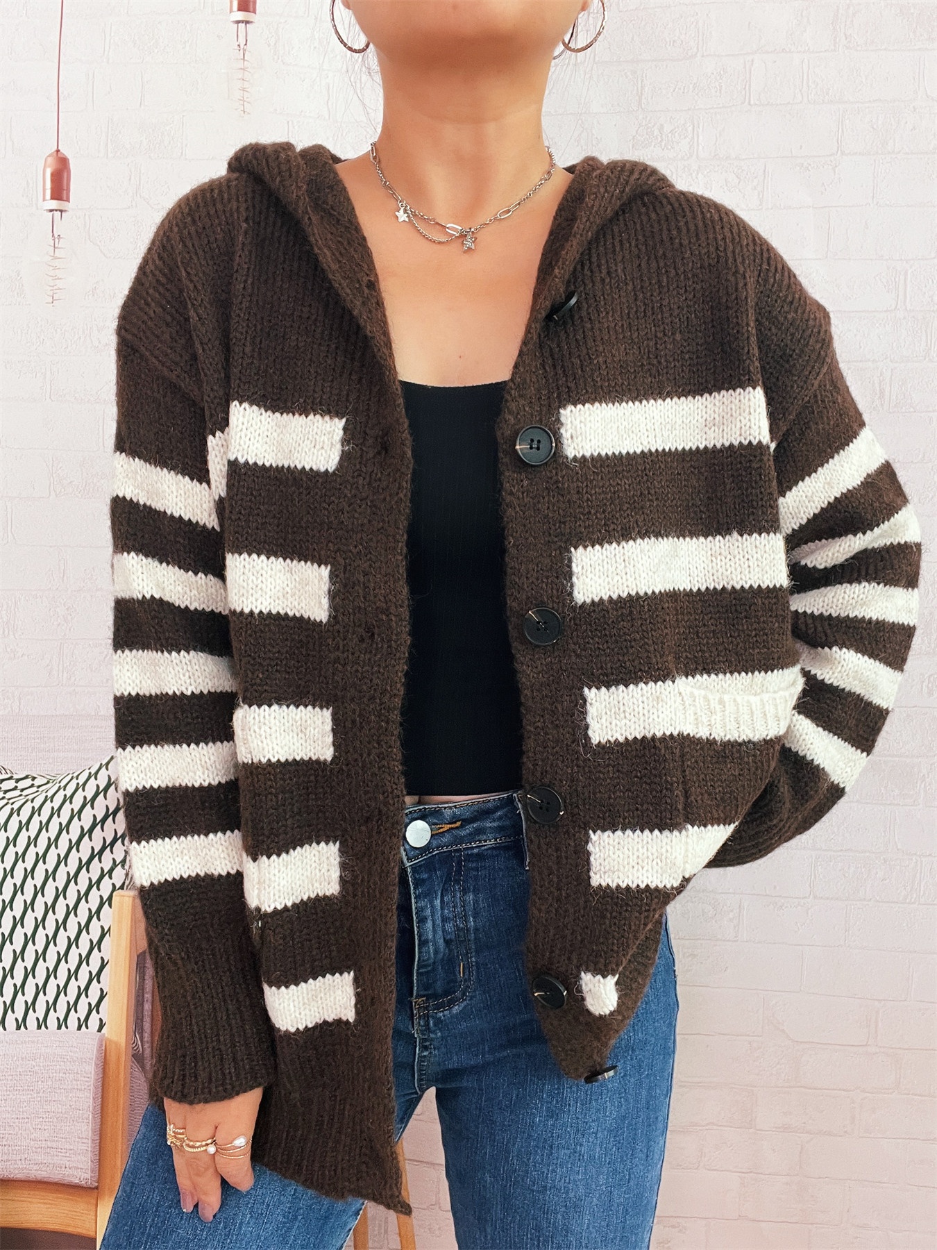 Casual Loose Plus-sized Hooded Single-breasted Long Sleeve Sweater For Women