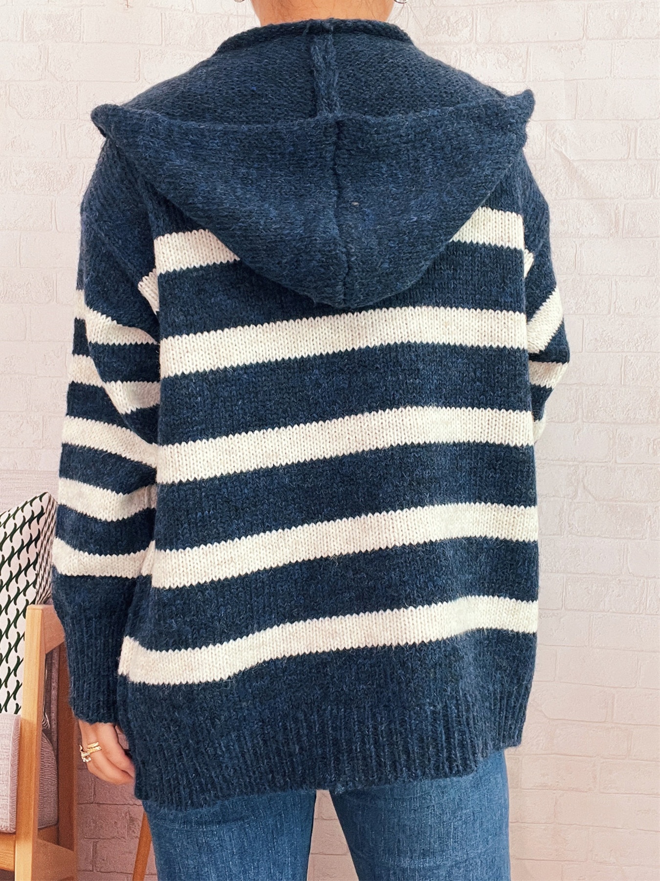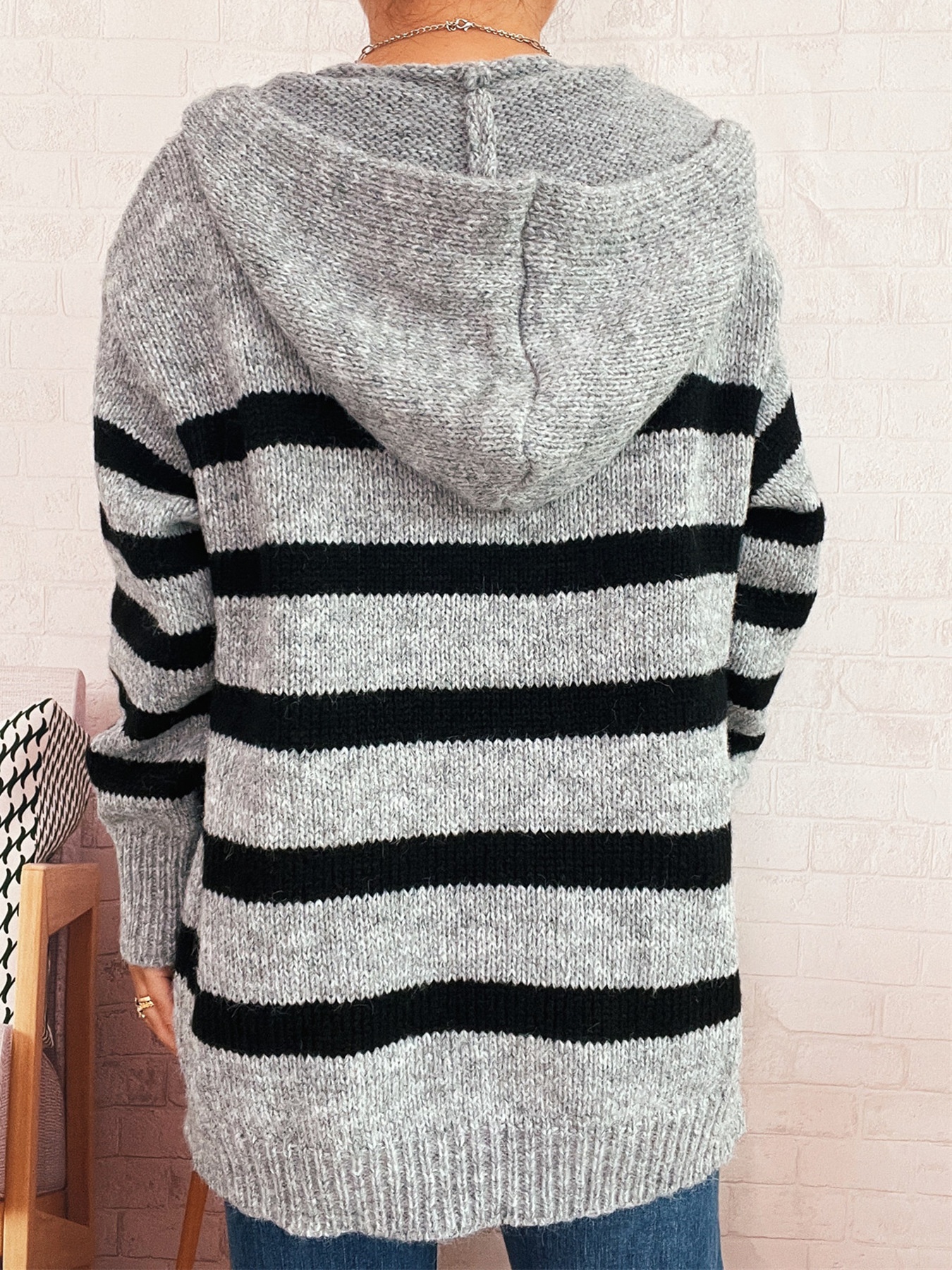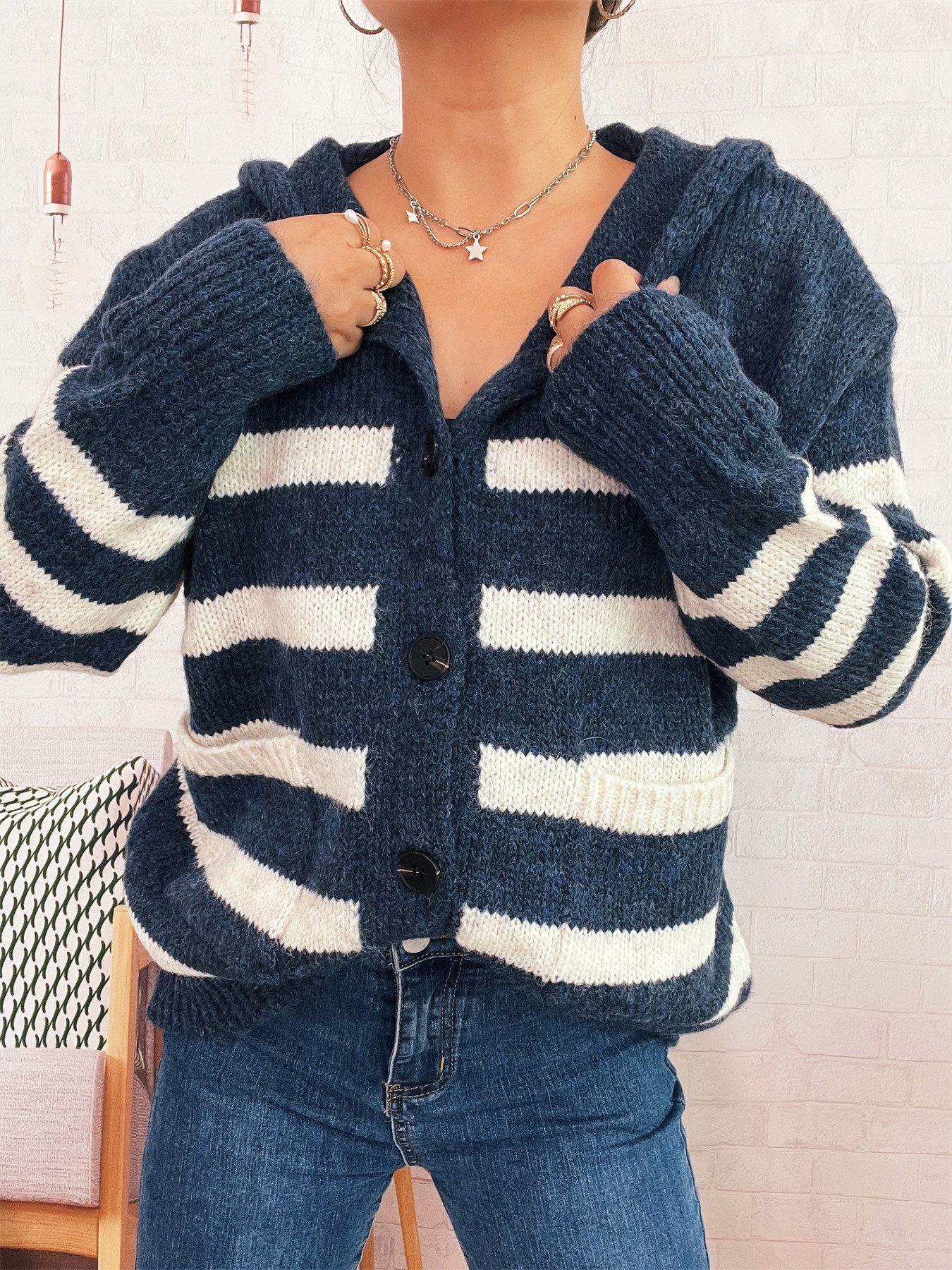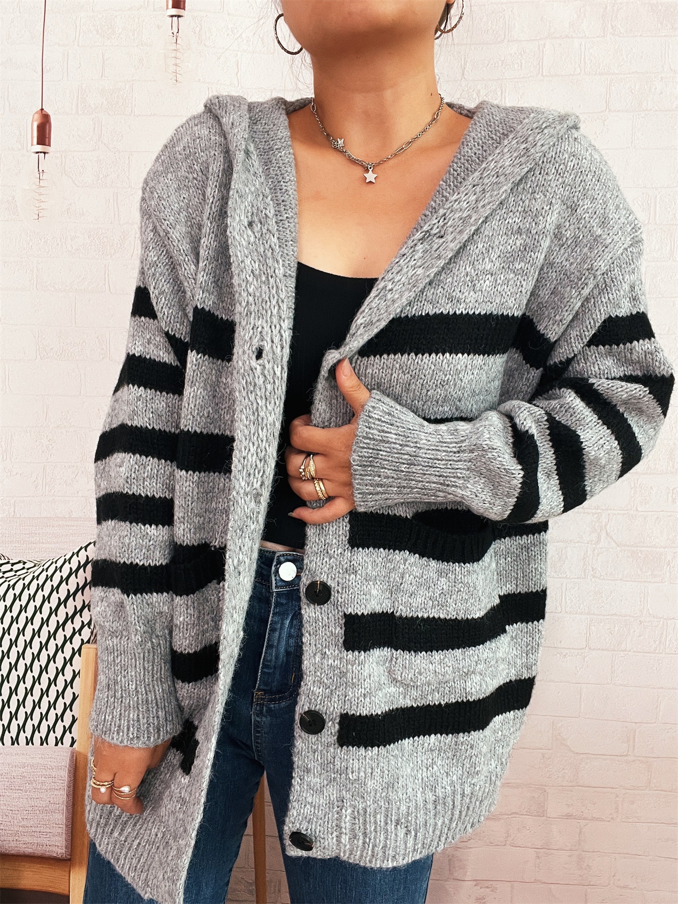 Casual Loose Plus-sized Hooded Single-breasted Long Sleeve Sweater For Women