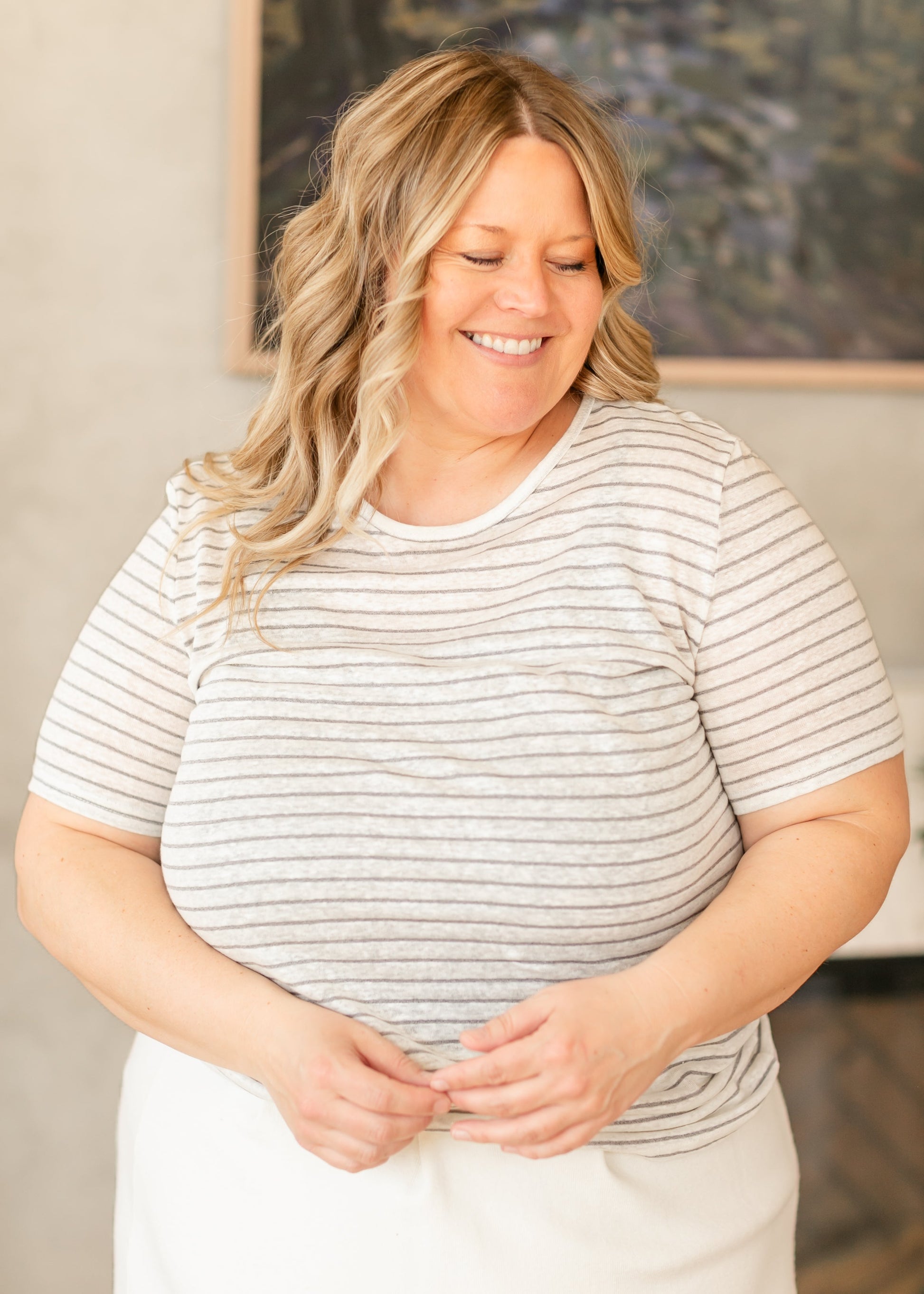 The Essential Linen Short Sleeve Tee blends effortless style with everyday comfort. Made from a breathable linen blend, it features a relaxed fit and timeless short sleeves. Perfect for layering or wearing solo, this lightweight staple pairs easily with anything from denim to dressy skirts offering cool, all-day wear and endless versatility for any occasion.