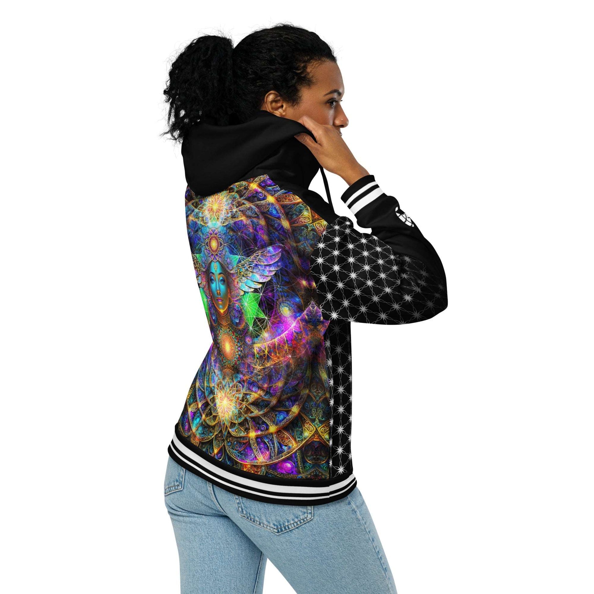 The Healing Wellness Deity Unisex Zip Hoodie wraps you in visionary art, featuring a luminous celestial figure surrounded by fractal light, sacred geometry, and vibrant cosmic hues. Perfect for cooler days or as a statement layer in your everyday wardrobe.