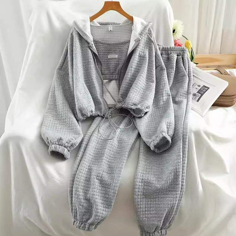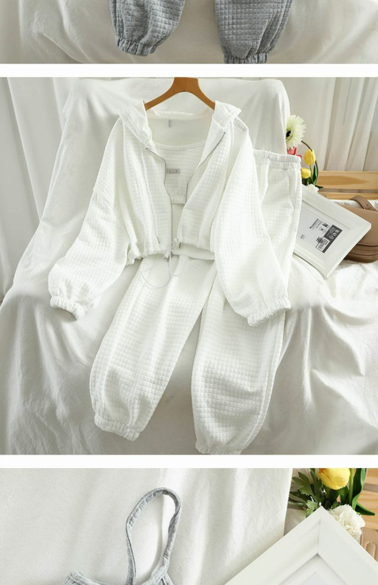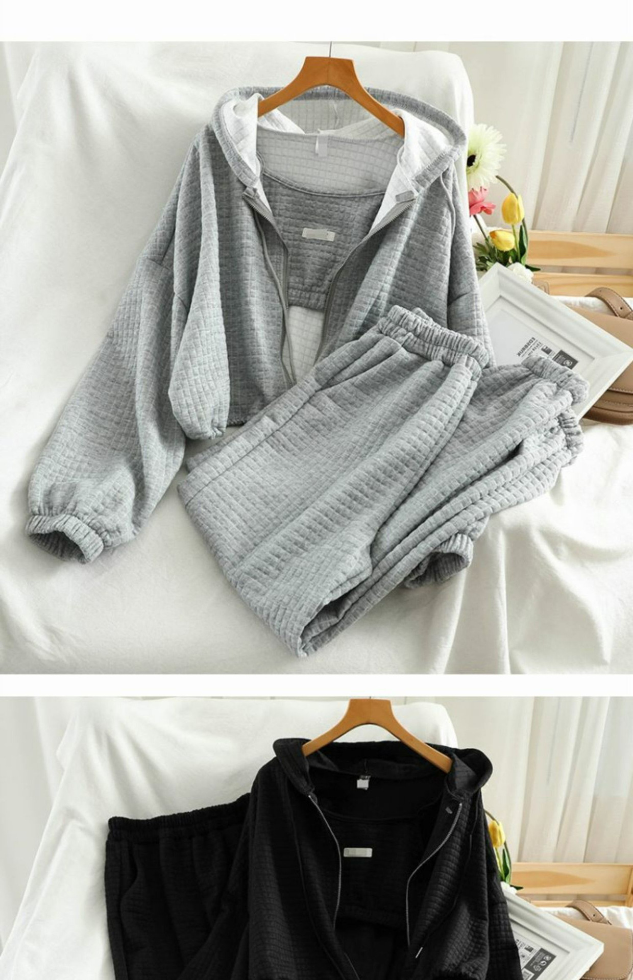 Hooded Cardigan Zipper Sports Three-piece Suit