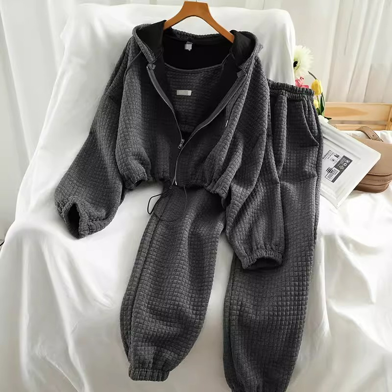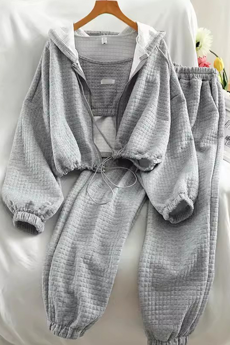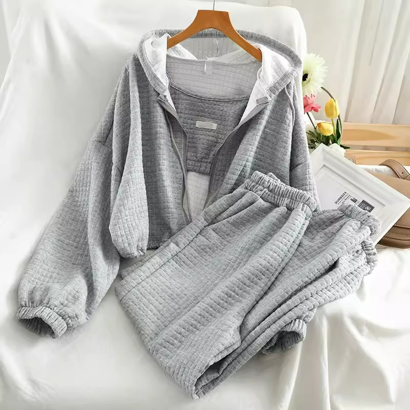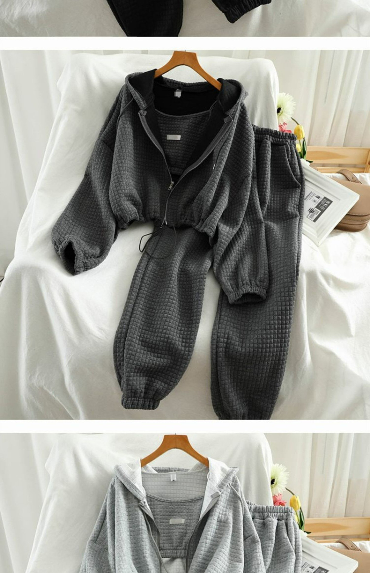 Hooded Cardigan Zipper Sports Three-piece Suit