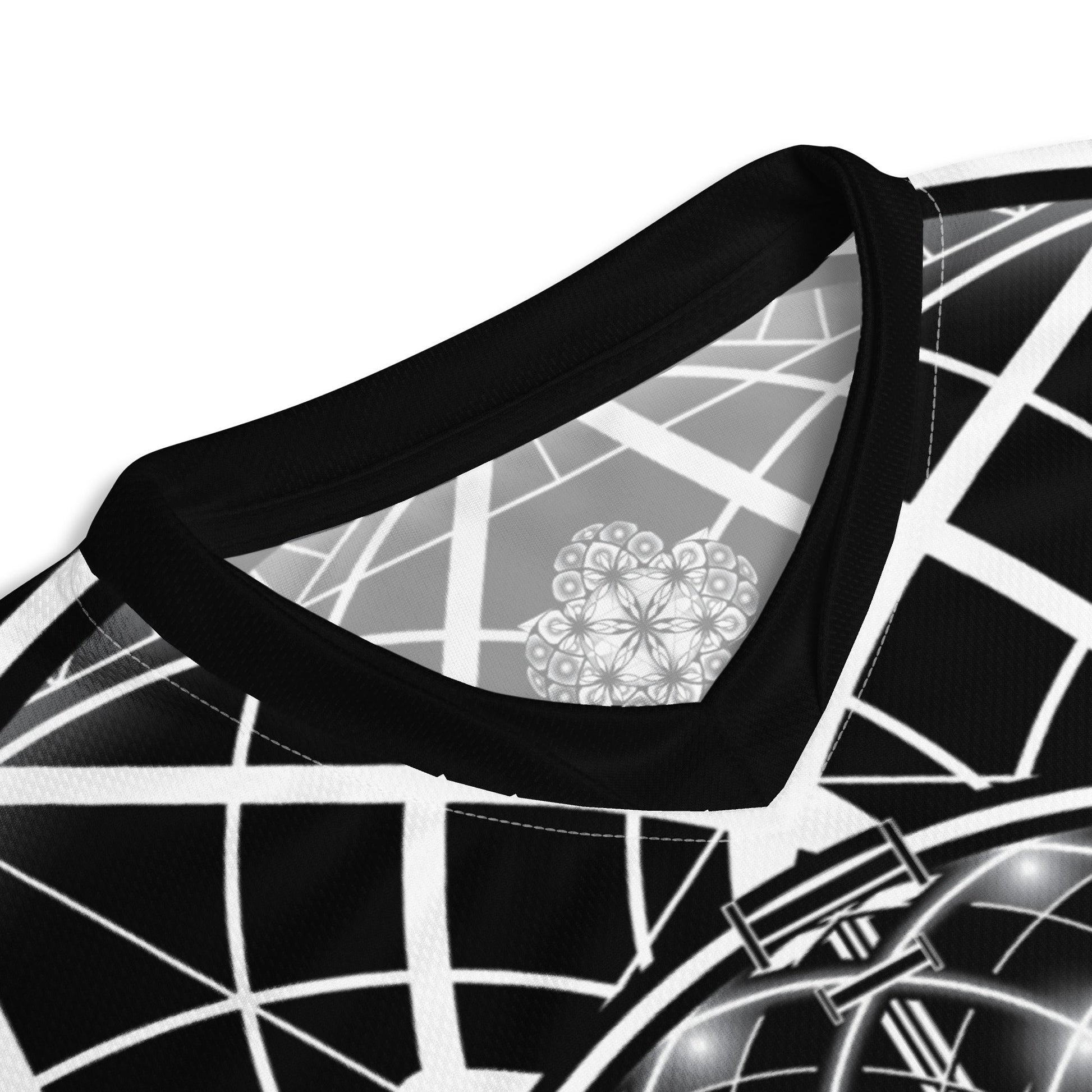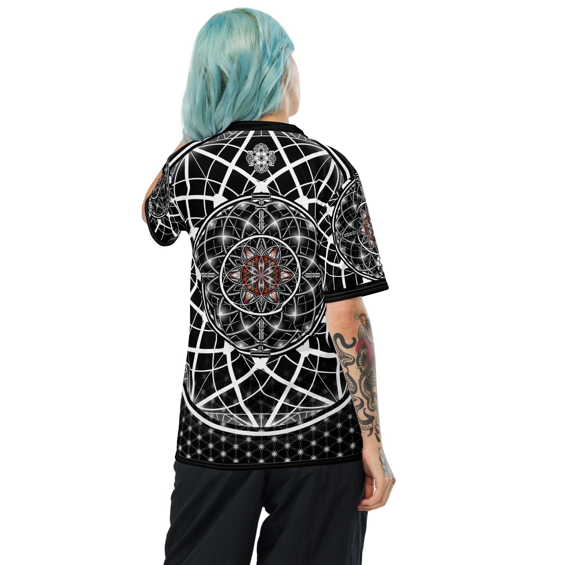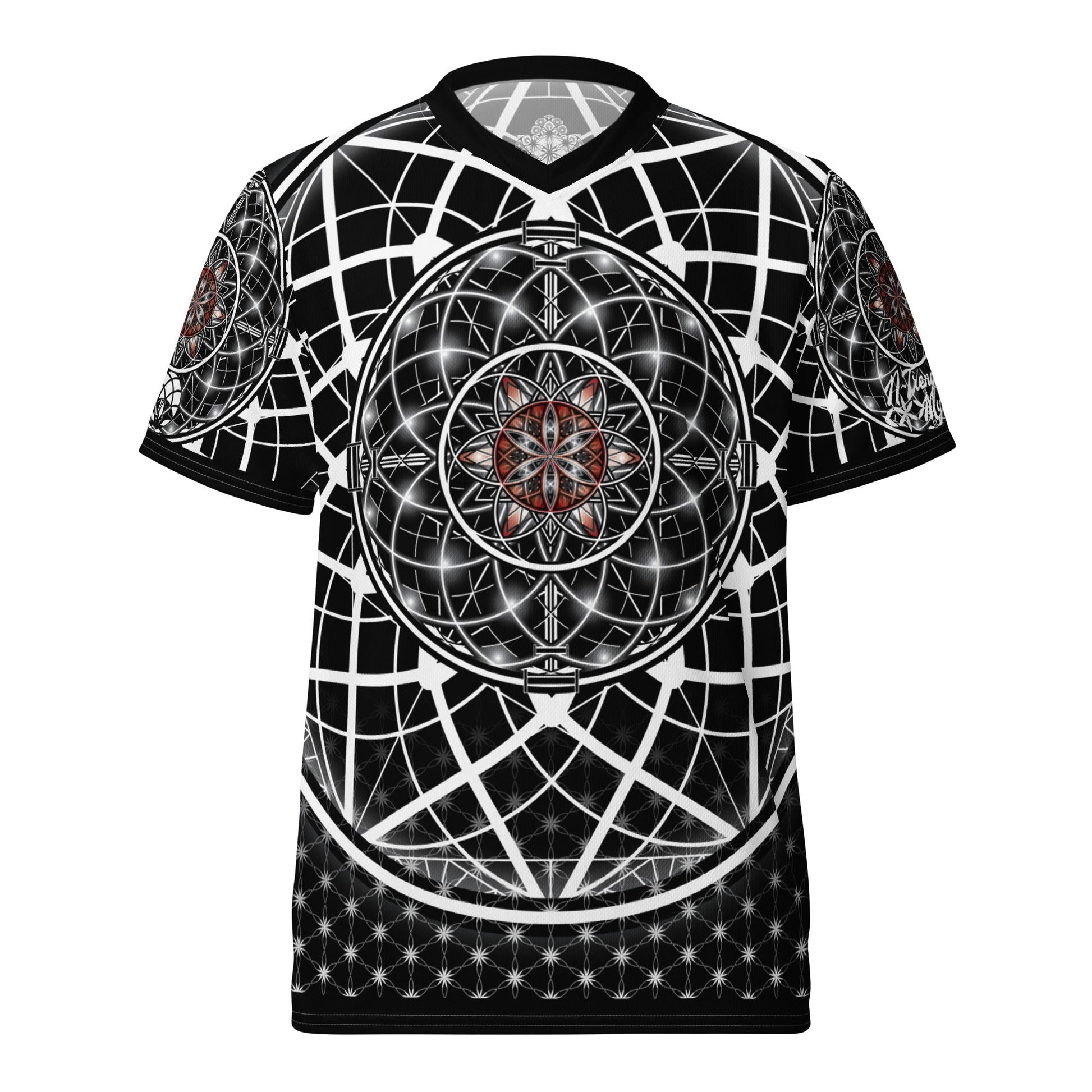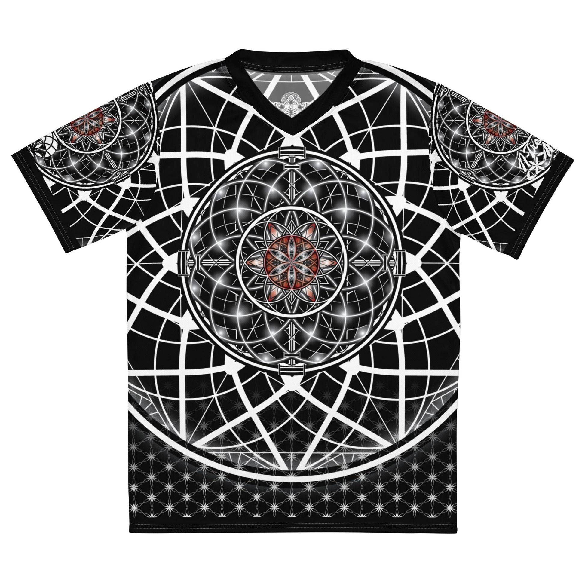 The Inner Reflections | Recycled Unisex Sports Jersey is a high-vibe fusion of visionary art, sacred geometry, and eco-conscious design. Its layered mandala centerpiece radiates balance and interconnectedness, while a white grid lattice wraps the garment in cosmic symmetry. Whether on the field, at a festival, or in daily life, this jersey moves with you in comfort and style.