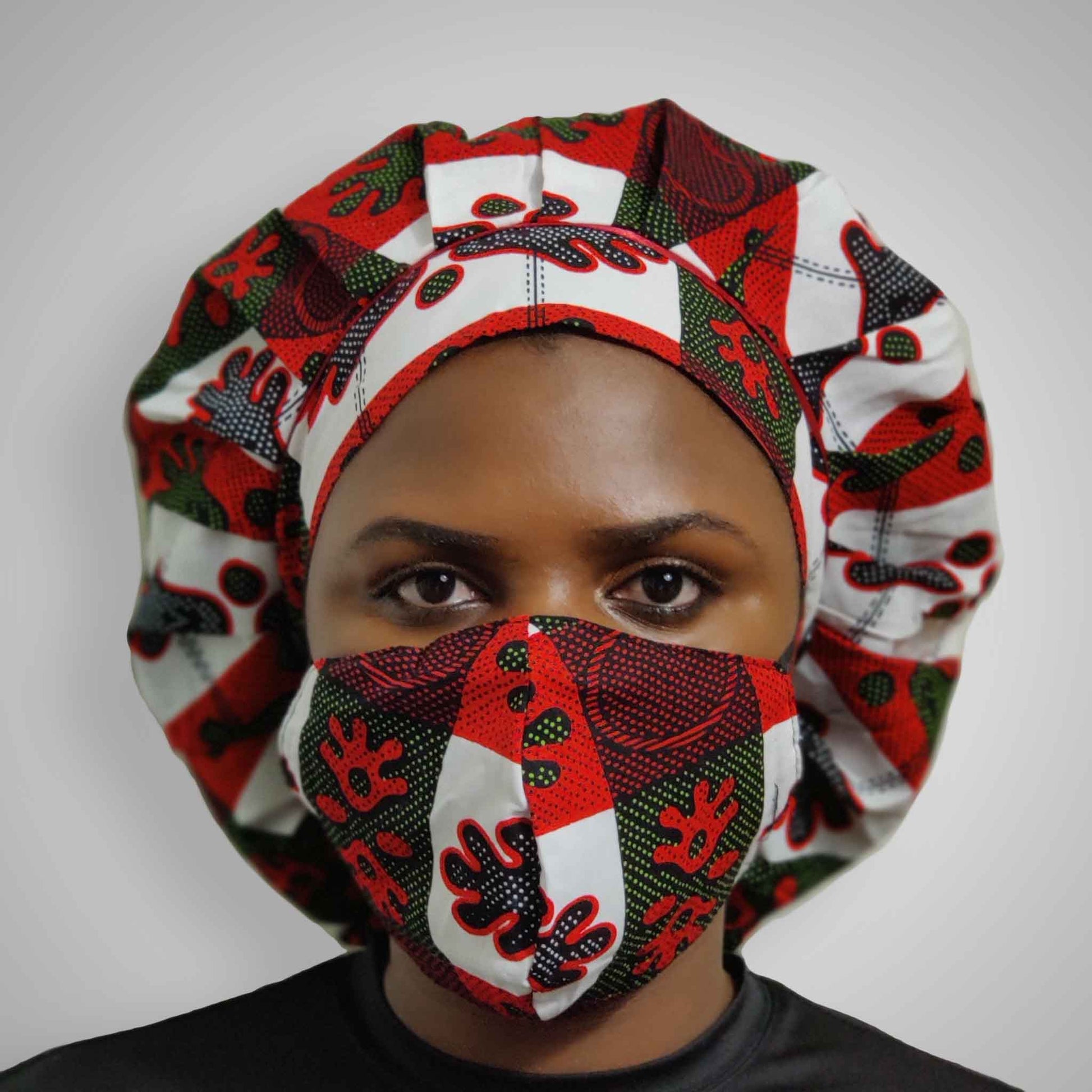 The Kente masks is made with triple layers of Ankara cotton fabric and is finished with a double elastic band that goes around the head from ear to ear.