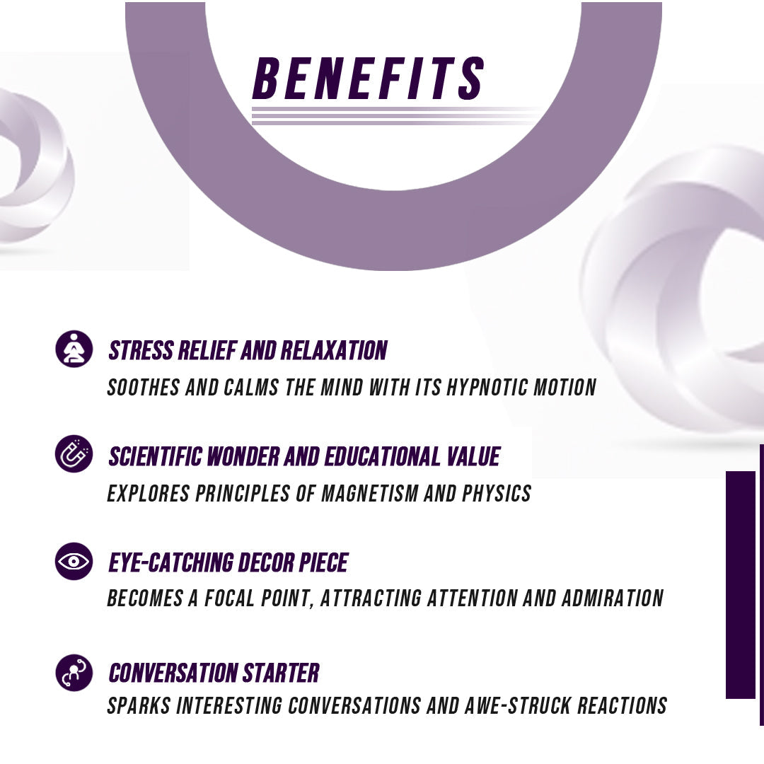 - Stress Relief: This Magnetic orbit spinning ball is the perfect way to relieve stress and anxiety. The repetitive motion of the ball bearing around the orbiter is extremely soothing and can help calm your nerves and relieve stress.