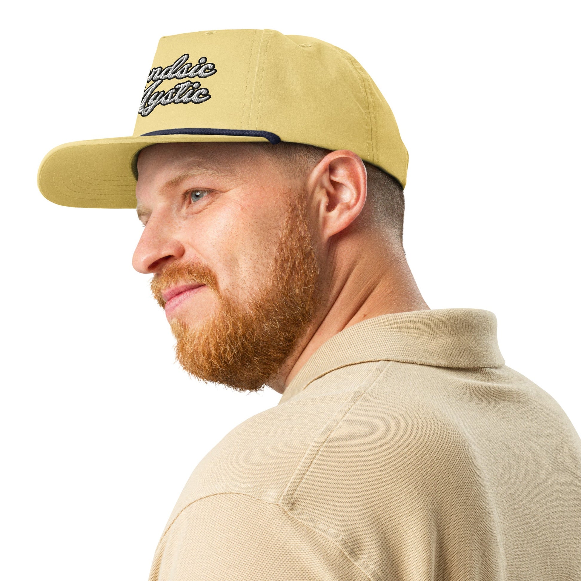 The Mystic Classic Golf Rope Cap blends timeless style with subtle esoteric energy. Designed for those who walk between the worlds of leisure and intention, this cap elevates any look with its structured crown, braided rope accent, and embroidered NTrendSic Mystic emblem.
