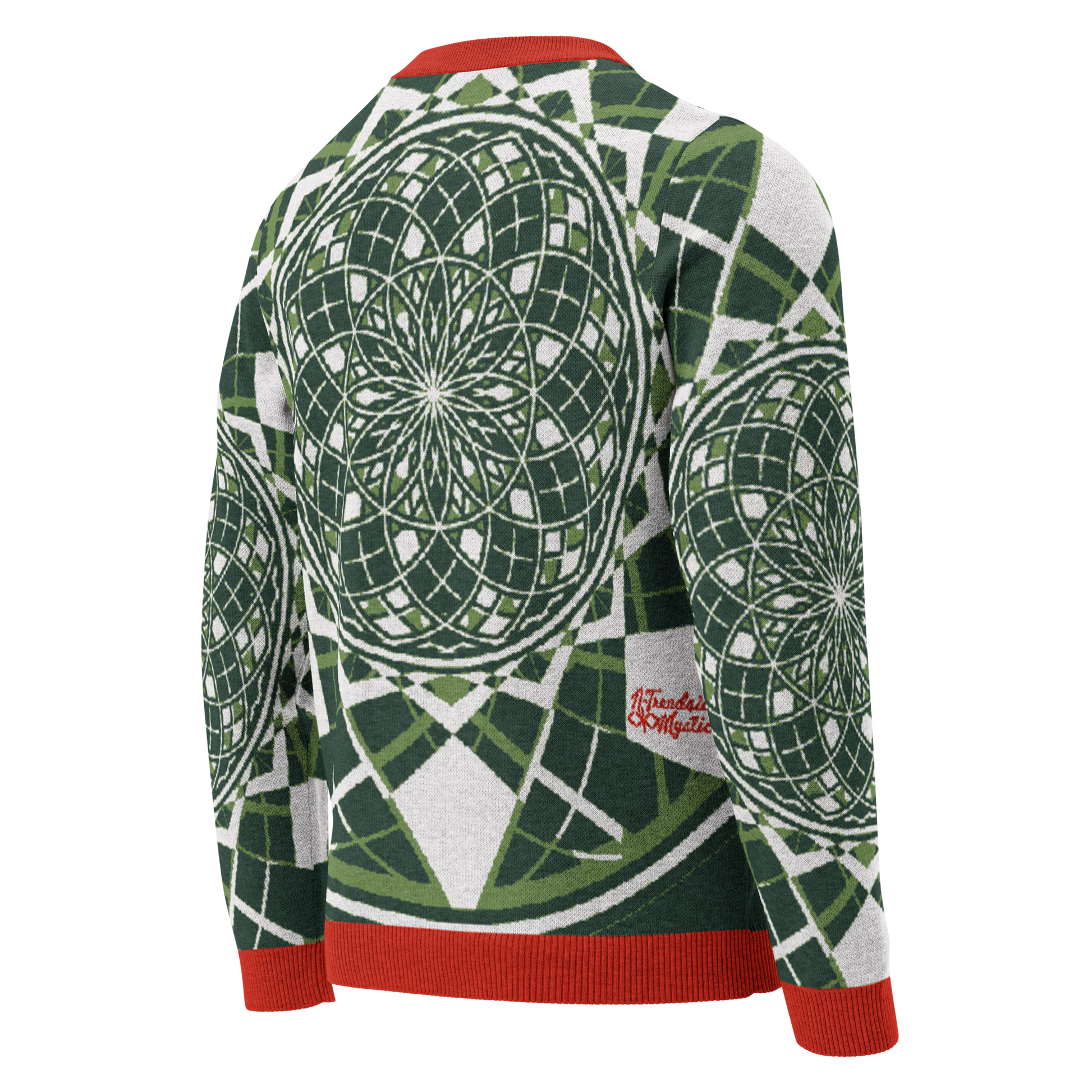 The Mystic Metamorphic Candy Knitted Crew Neck Sweater is a vibrant weave of sacred geometry and pastel dreamscapes. Crafted via Knit-On-Demand technology, this lightweight sweater channels festival-ready style and elevated comfort into one seamless garment.