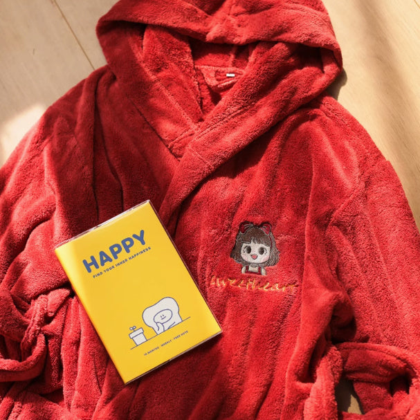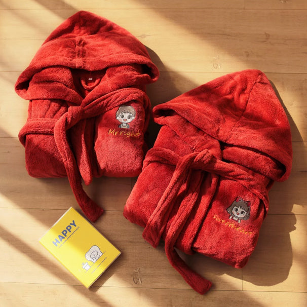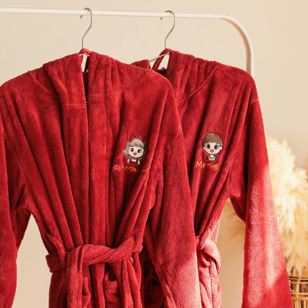 Newlywed Couple Wedding Embroidered Text Water Absorbing Home Bathrobe