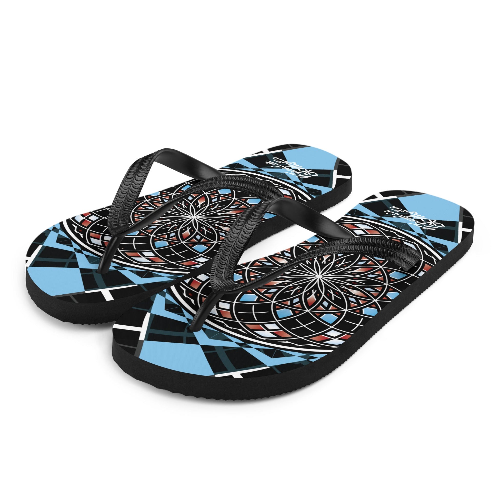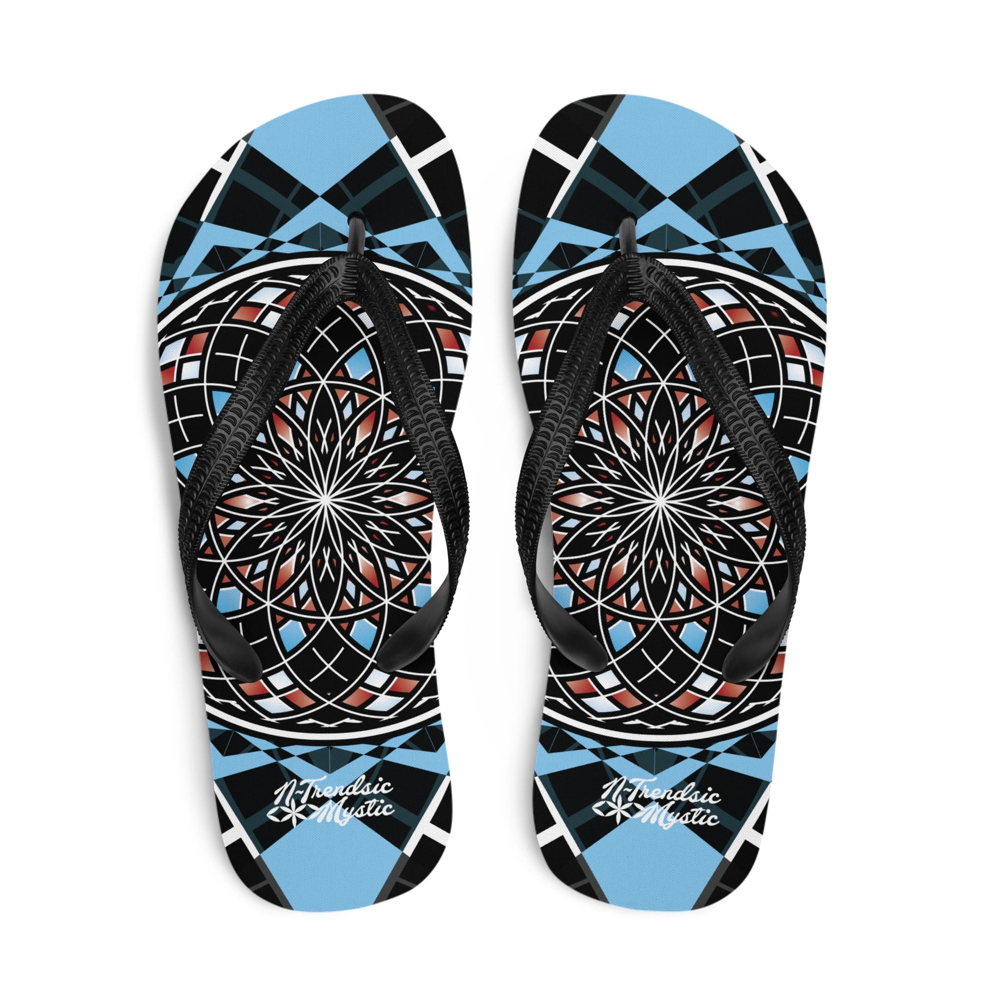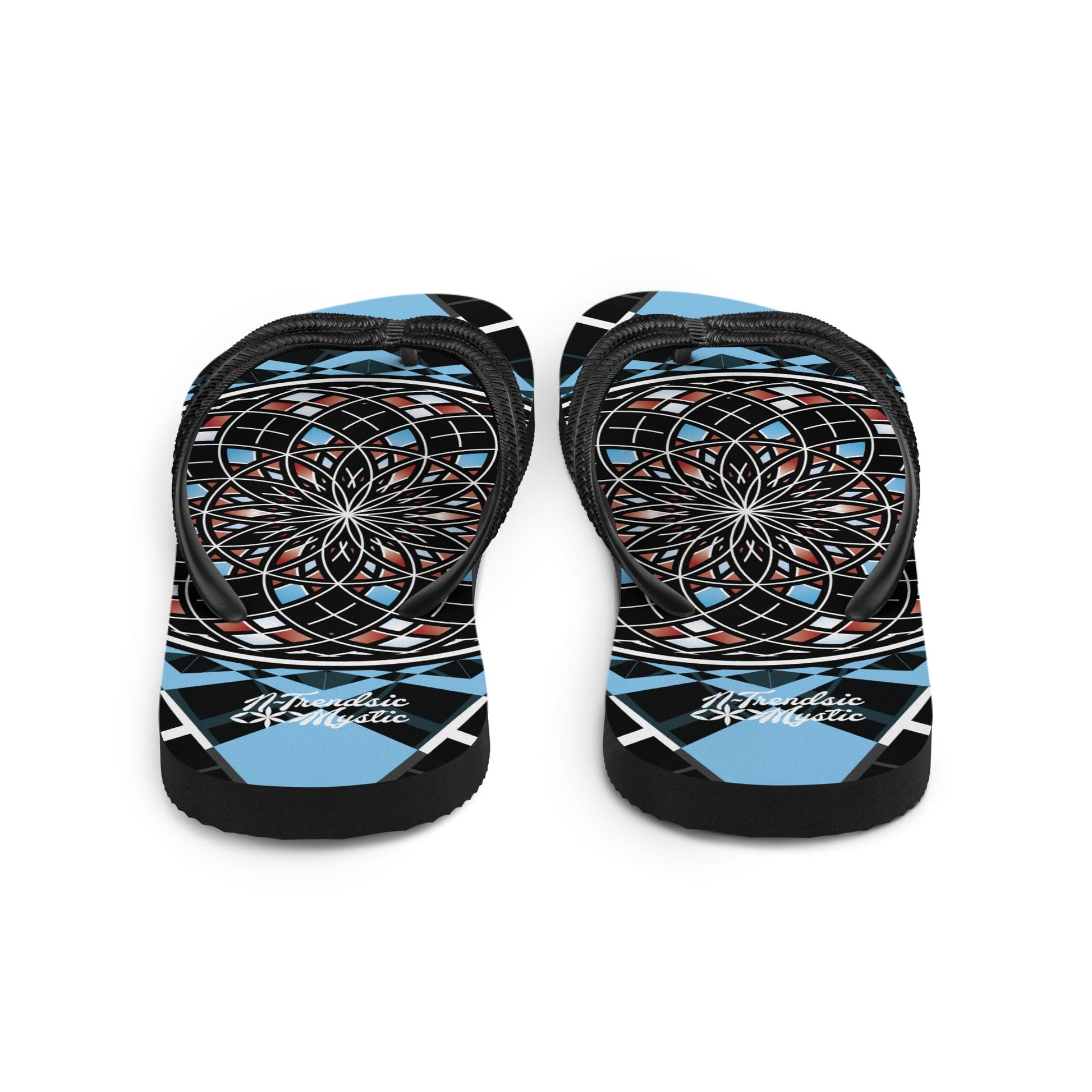 Step light, even under the blazing sun. The Quantum Bloom Flips bring your sacred geometry flow to beach days, festivals, and laid-back afternoons. Designed with the same cosmic lattice artwork as the Quantum Bloom Kicks and Quantum Bloom Zip Hoodie, these flip-flops let you carry resonance in every step - even when you’re barefoot in spirit.