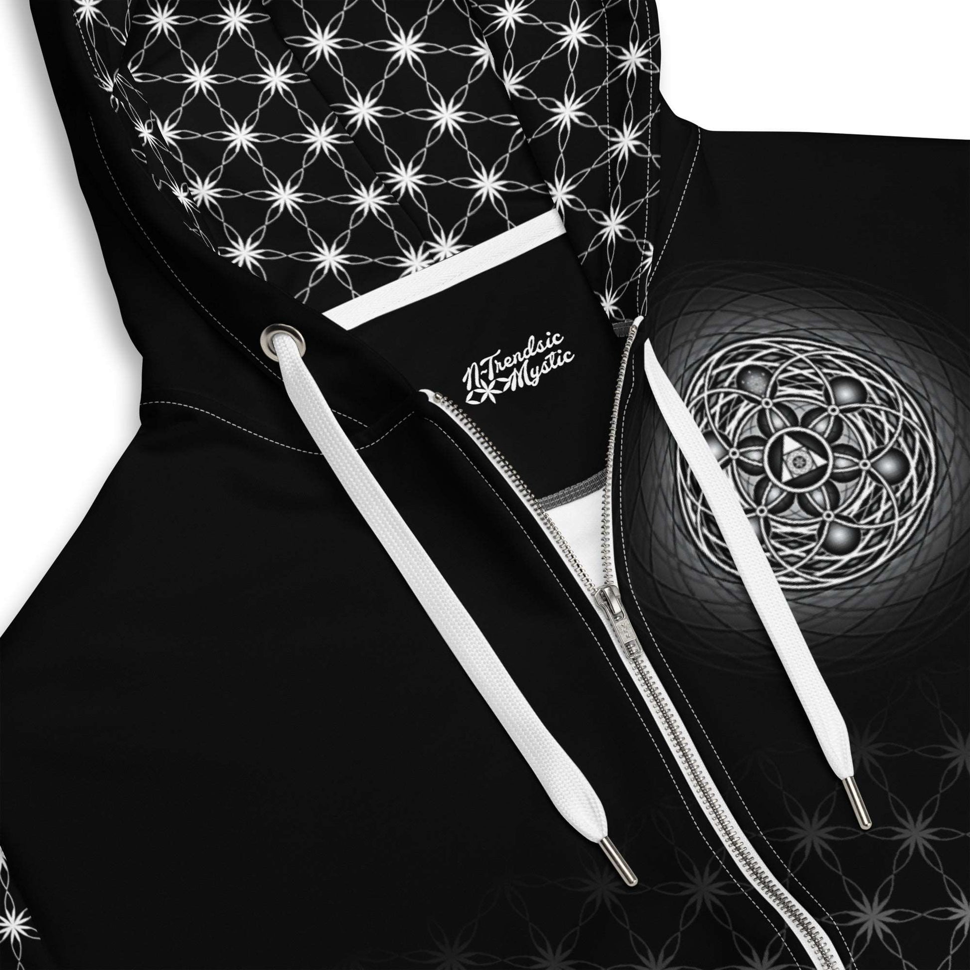 Crafted with premium, smooth-touch fabric for all-day comfort, this hoodie blends streetwear edge with metaphysical depth. From the precise printing of the sacred patterns to the contrasting black-and-white palette, every detail serves both form and function - making it as versatile as it is meaningful.