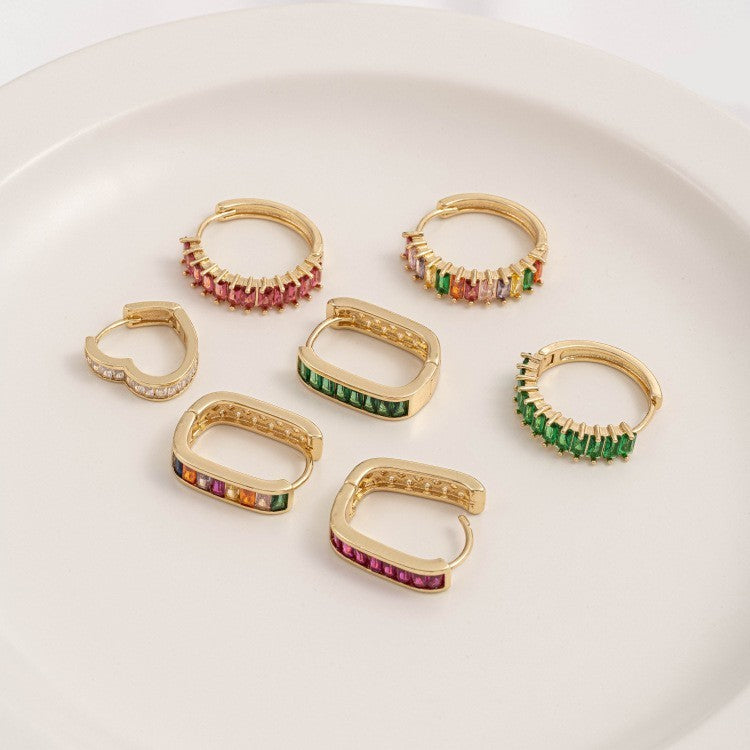 Color:, Green zirconium U-shaped ear clip 15x19mm 1 piece