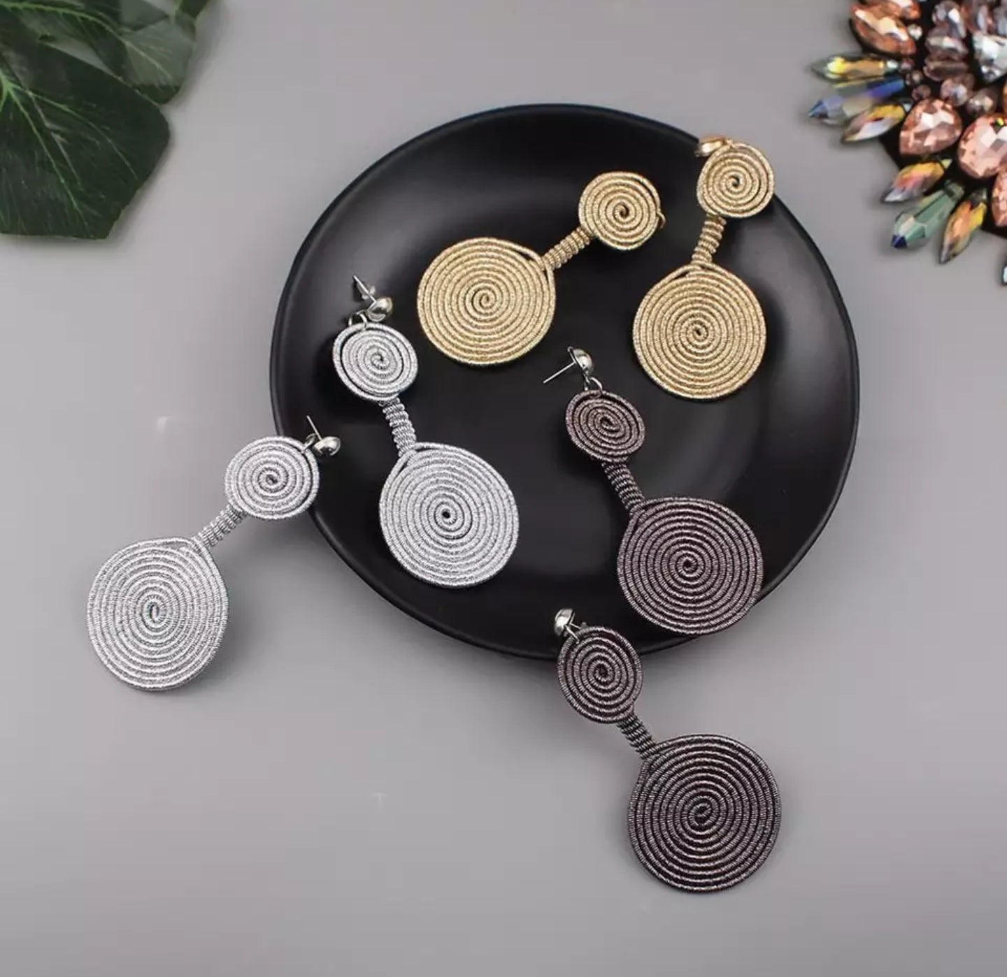 New design in, met our gorgeous spiral wire wrapping double circle drop earring, add them to you new Look.