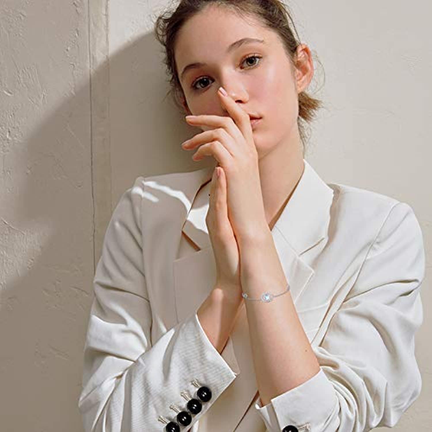 Sterling Silver Moonstone Infinity Symbol Heart Link Bracelet for Birthday Christmas