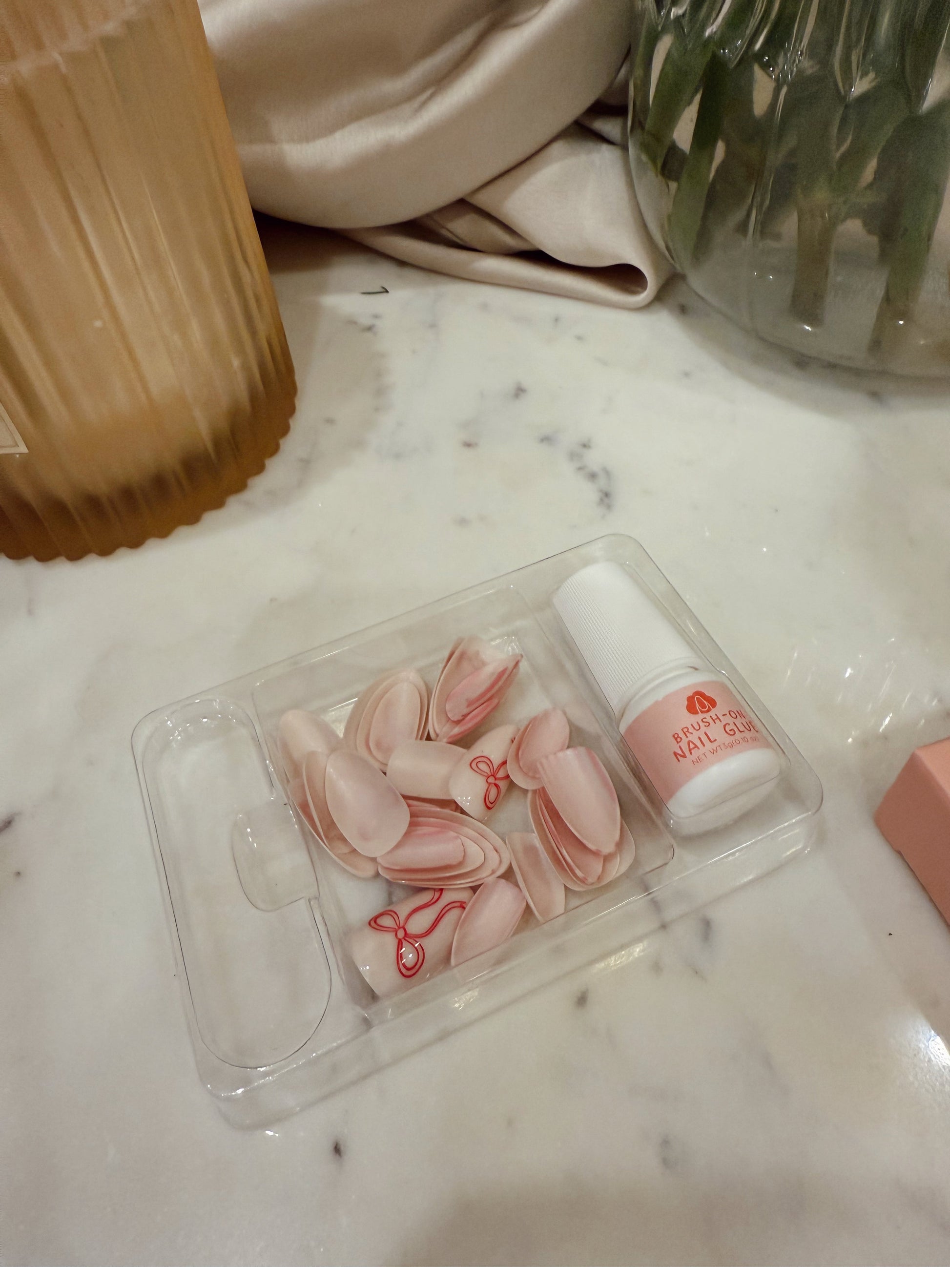 Get ready for a madly fun tea party with these cute Alice in Wonderland inspired press on nails! The set features adorable bows and pink stripes for a playful look. Perfect for any occasion, these nails will surely make you stand out and add some whimsy to your style.