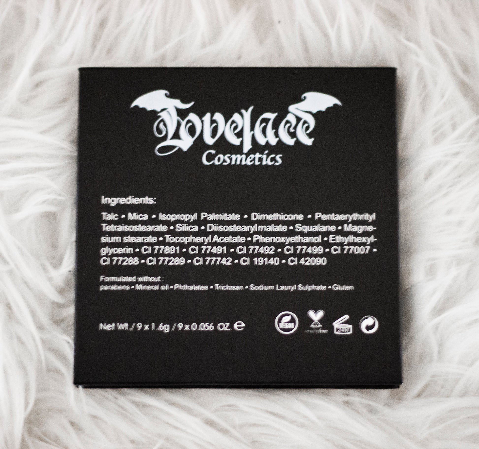 The Blood Countess Eyeshadow Palette has 9 high pigmented matte, shimmers and glittery red/purple colors inspired by vampire legend of the blood countess Elizabeth Bathory. It's a fully vegan, gluten and cruelty free GOTHIC palette! NO NUDES EVER!