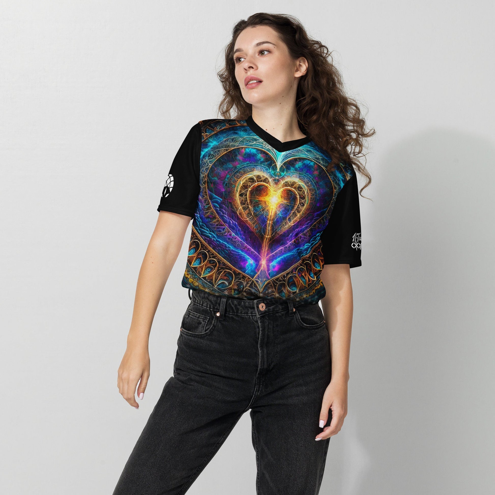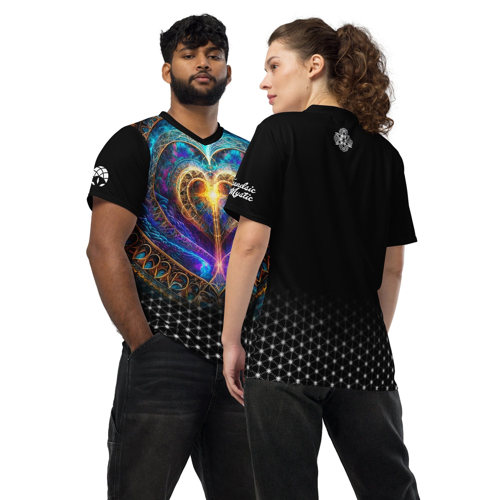 Channel the cosmic frequency of the Universal Love 2.0 Jersey - a radiant fusion of sacred geometry, heart-centered energy, and sportswear functionality. Designed for movement, yet woven with the symbolism of infinite connection.