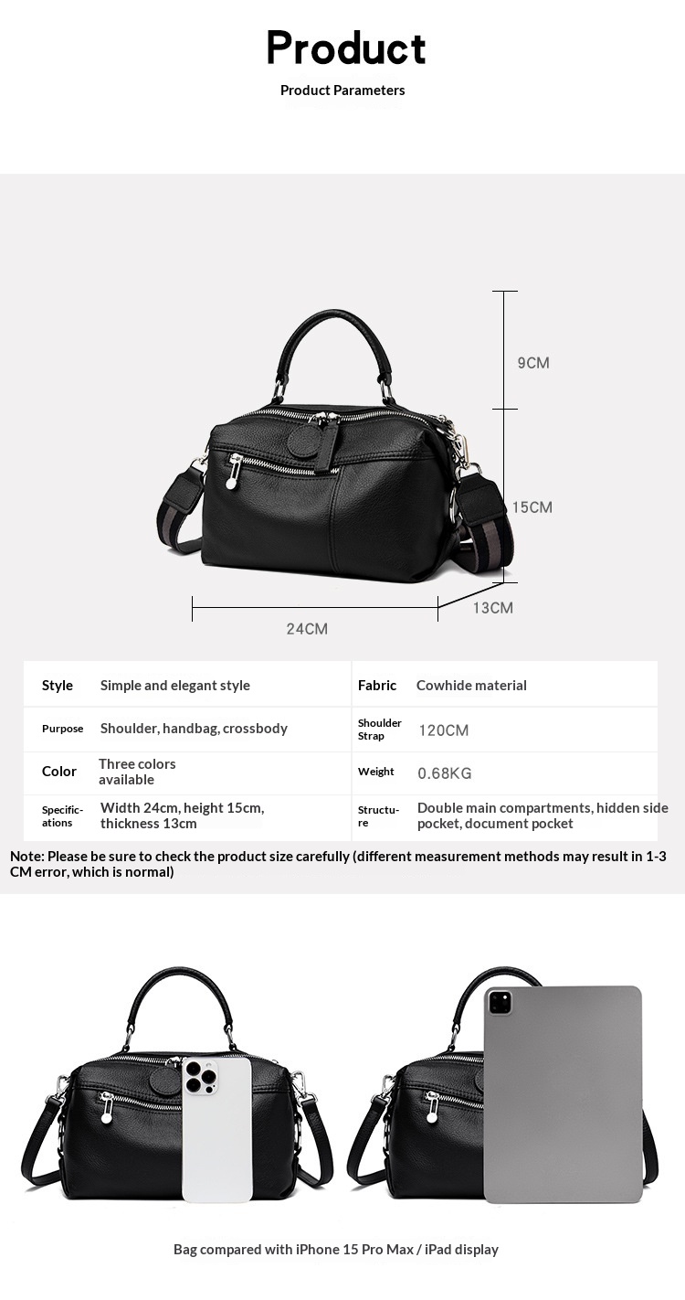 Womens Shoulder Bag Made From Premium Full-grain Cowhide For A Luxurious
