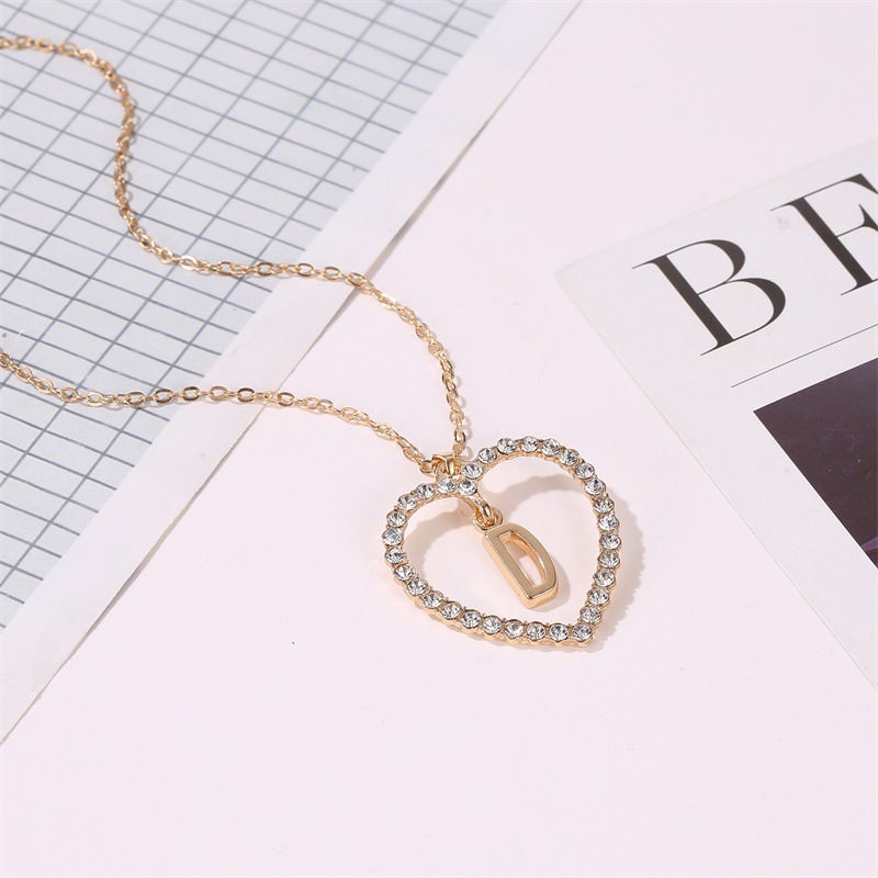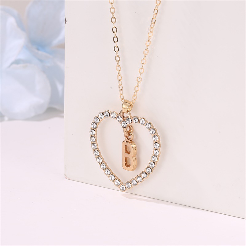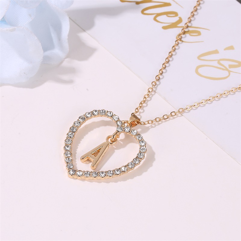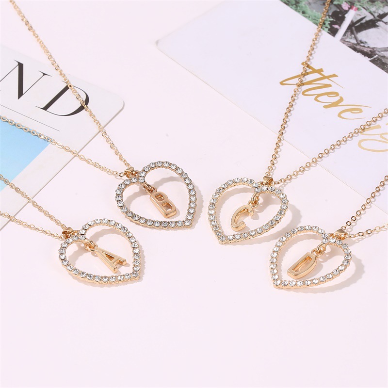 Womens Stylish & Minimalist Diamond-Encrusted 26-Letter Heart Pendant Necklace